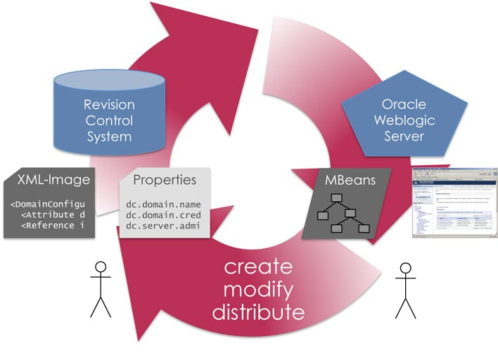Automation of the whole process for the provision of an Oracle Weblogic domain configuration consists of a multitude of procedural steps, both from a semantic as well as a syntactic perspective, in combination with the required artifacts, programmatically reducible to a single command line call, enables execution in the shortest time possible with consistently high quality and reproducibility.